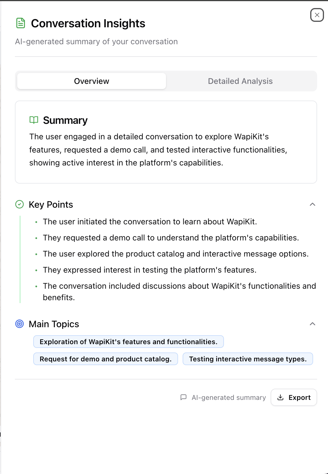 Wapikit remembers every detail:- Customer name, past purchases, recent questions