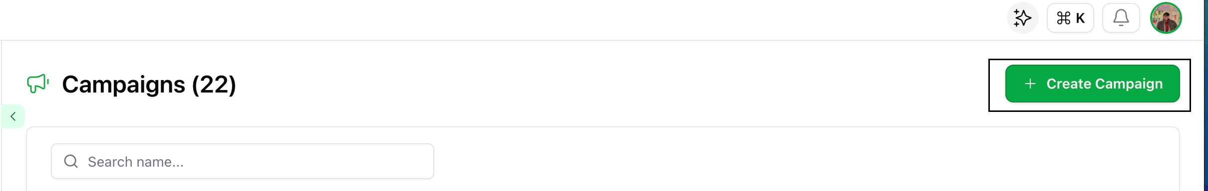 /campaigns page from the main sidebar and click the Create Campaign button.