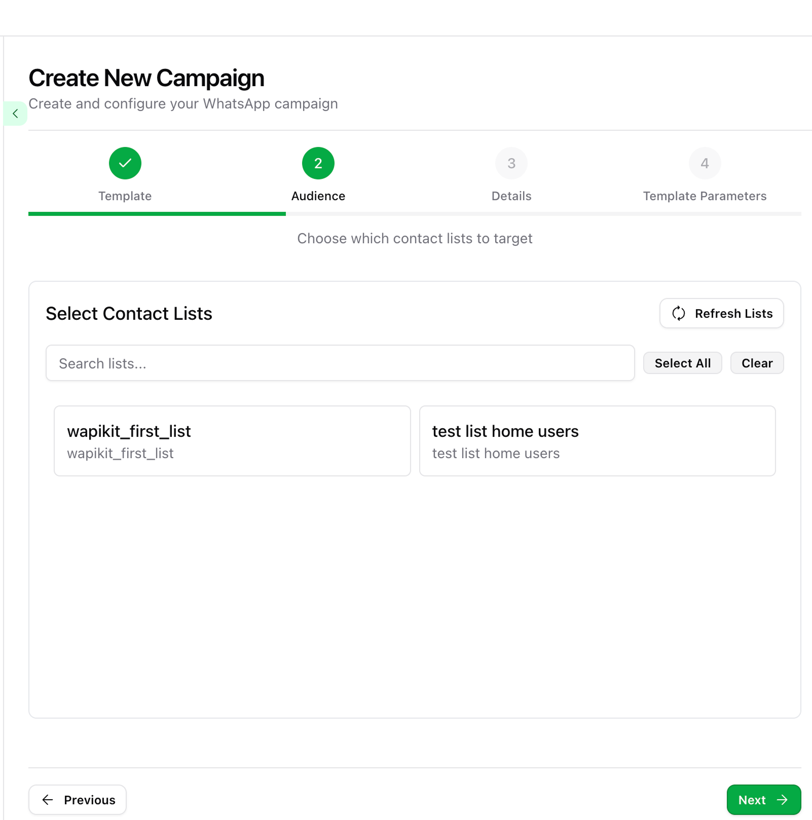 Select the contact list(s) to which you want to send this campaign, then click Next.