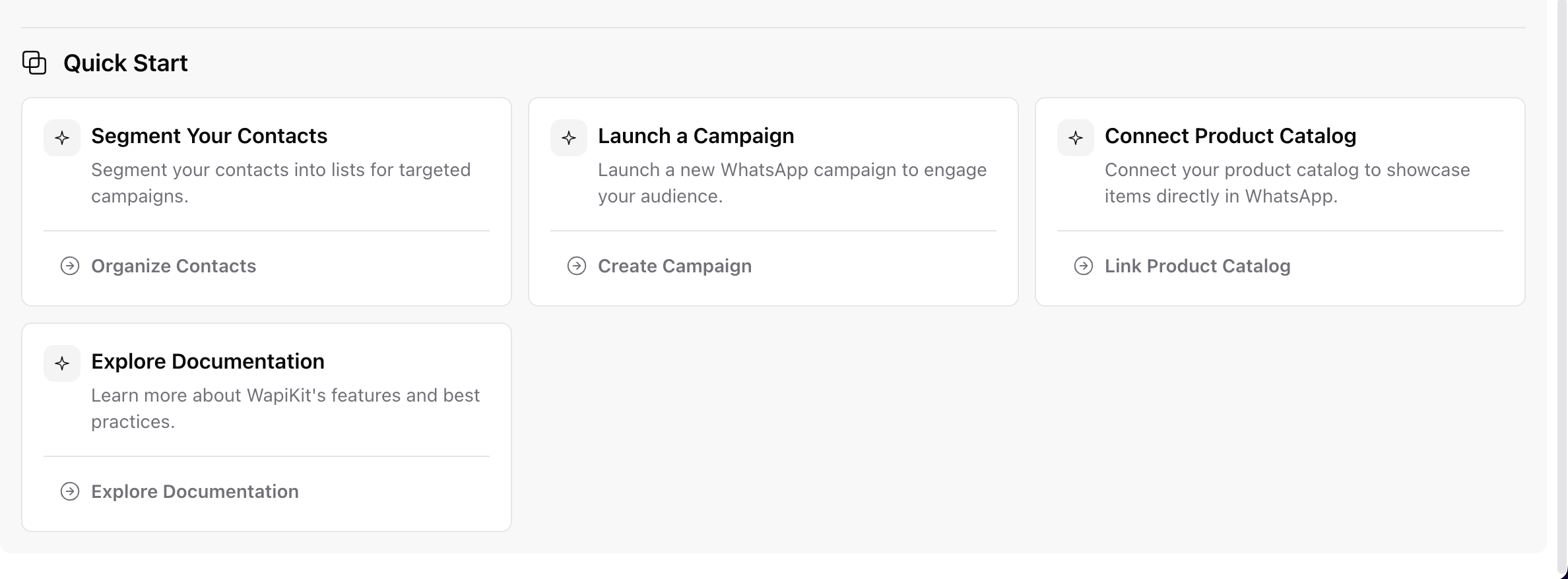 We recommend reviewing the quick setup tips shown on your Wapikit dashboard.